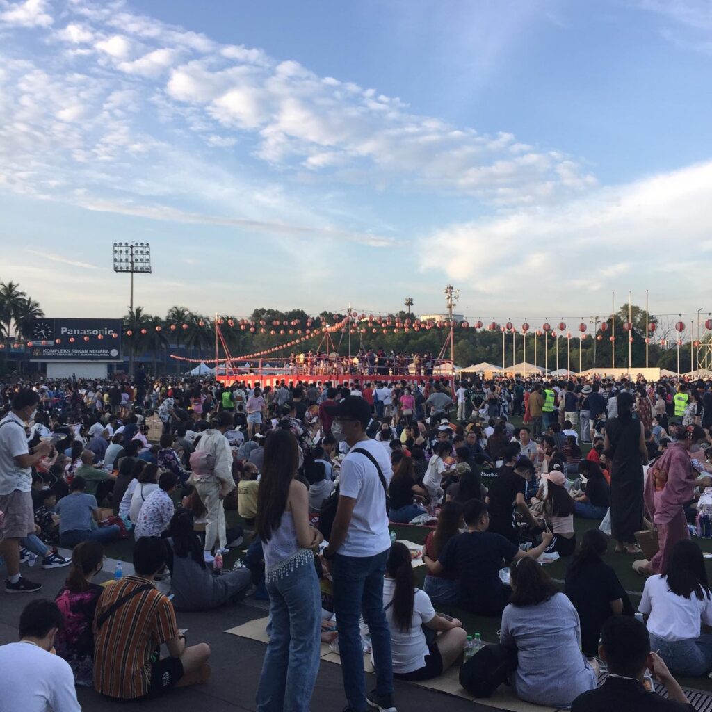 会場はPanasonicのスタジアムが開催場所でヤグラを中心にフードコートなど屋台もたくさん並んでいた。(マレーシアには日本食が人気で、スーパーにもコンビニにも日本食はどこにでもある。レストランもすき家、しゃぶ葉、スシキング、寿司三昧などなど沢山ある。)