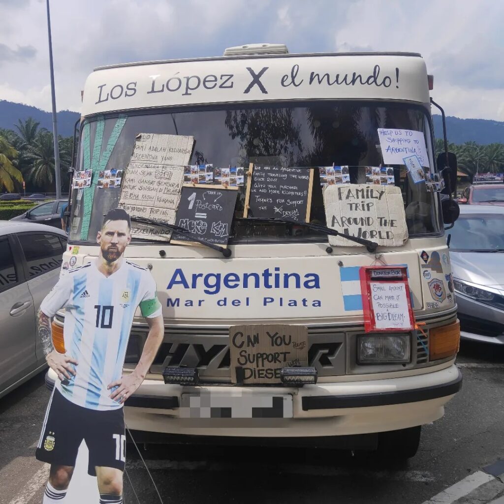 高速道路のサービスエリアで世界一周しているキャンピングカー発見!!